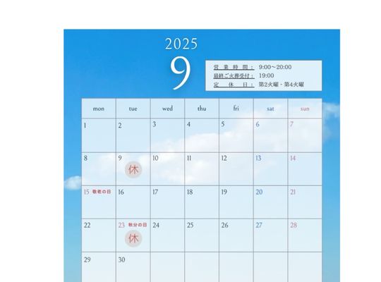 9月の定休日について